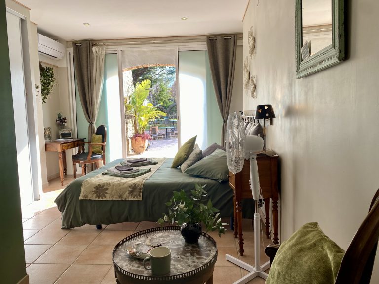 CHAMBRE coté piscine, avec terrasse privative, vue sur le parc